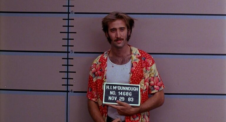 « Œuvre inspirée autant, sinon plus, par le cartoon que par la comédie classique, Arizona Junior collectionne les gags au fil d’une intrigue menée à toute allure. Sans se prendre au sérieux, les auteurs multiplient les clins d’œil et références, marqués au coin du loufoque. Au cœur du récit, un hors-la-loi et une femme policier unissent leurs modestes destins pour former un couple excentrique et attachant, qui se lance, désarmant de naïveté et de bonne volonté, dans une quête du bonheur semée d’embûches. Un plan simple en apparence – l’enlèvement d’un enfant – attire sur eux les calamités et transforme leur existence en cauchemar. Leur parcours heurté fournit aussi la matière d’une parabole caustique sur le rêve américain, qui trahit déjà une fascination des cinéastes pour la bêtise. » [François Causse]