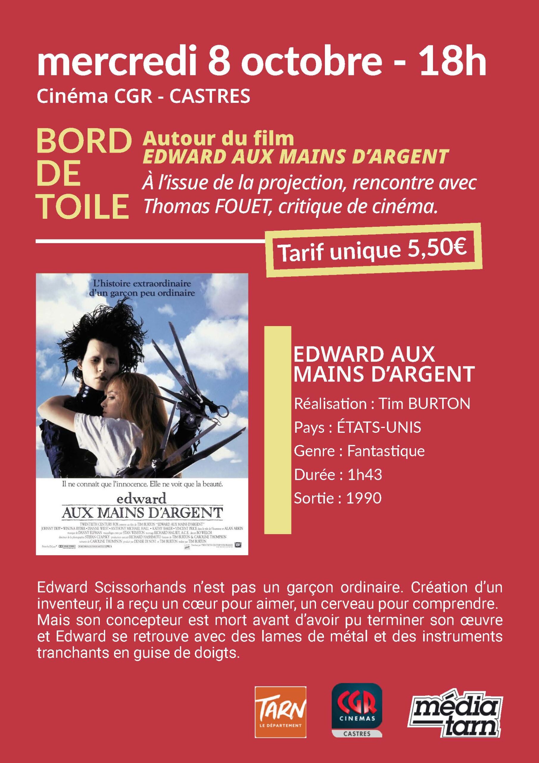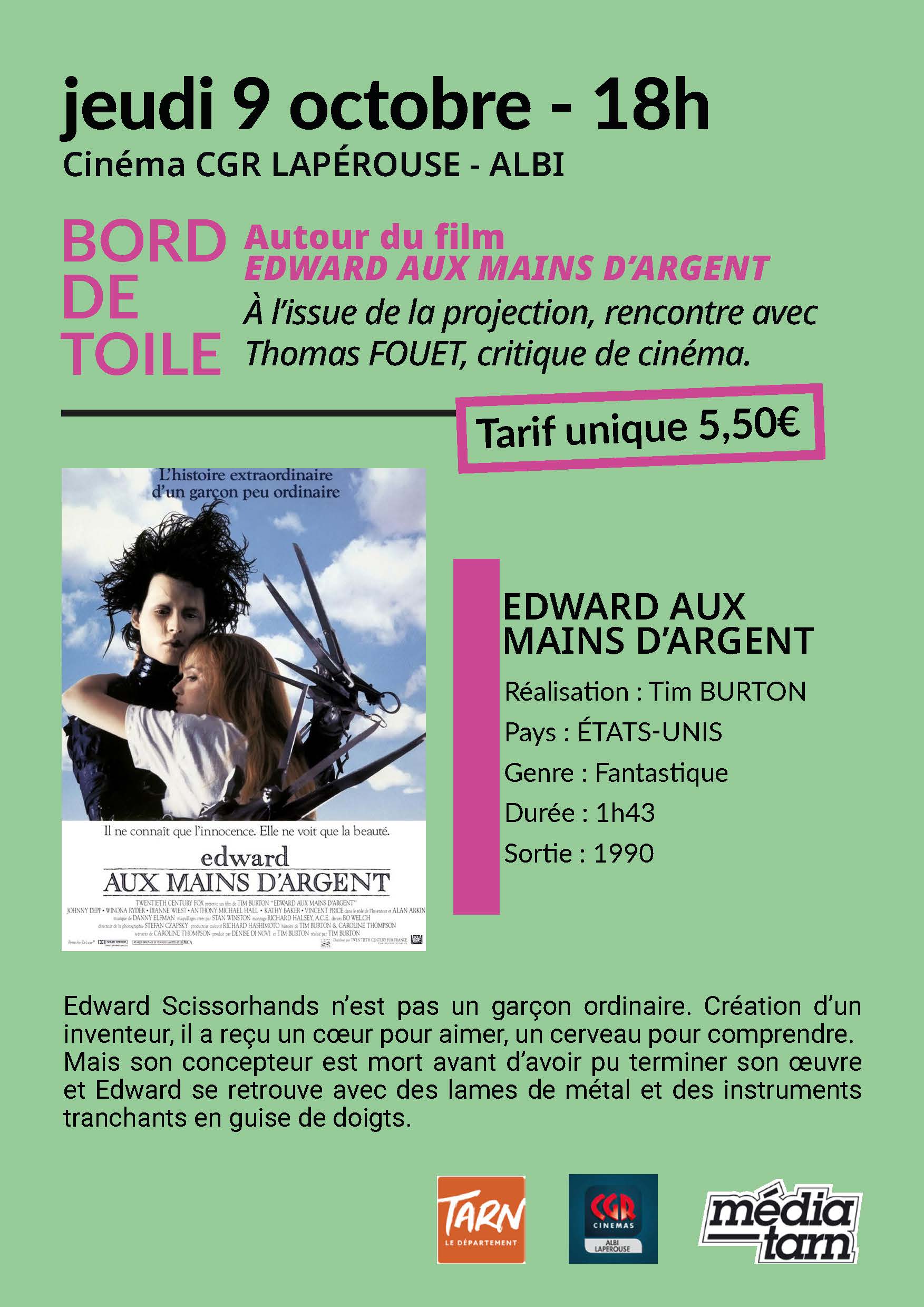 RENDEZ-VOUS le mercredi 8 octobre à 18h à Castres (CGR) et le jeudi 9 octobre à 18h à Albi (CGR lapérouse) autour du film Edward aux mains d’argent de Tim Burton (1990, 1h43, VOSTF).