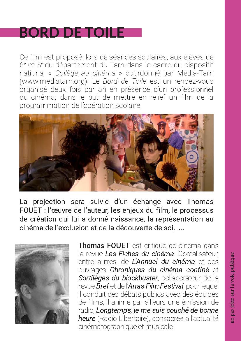 Thomas FOUET est critique de cinéma dans la revue Les Fiches du cinéma. Coréalisateur, entre autres, de L’Annuel du cinéma et des ouvrages Chroniques du cinéma confiné et Sortilèges du blockbuster, collaborateur de la revue Bref et de l’Arras Film Festival, pour lequel il conduit des débats publics avec des équipes de films, il anime par ailleurs une émission de radio, Longtemps, je me suis couché de bonne heure (Radio Libertaire), consacrée à l’actualité cinématographique et musicale.